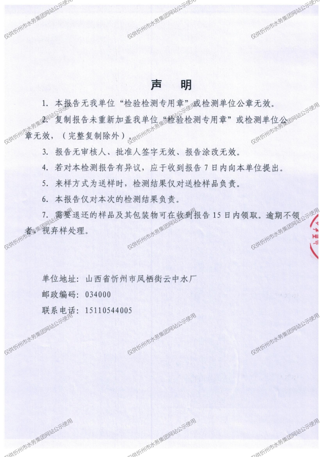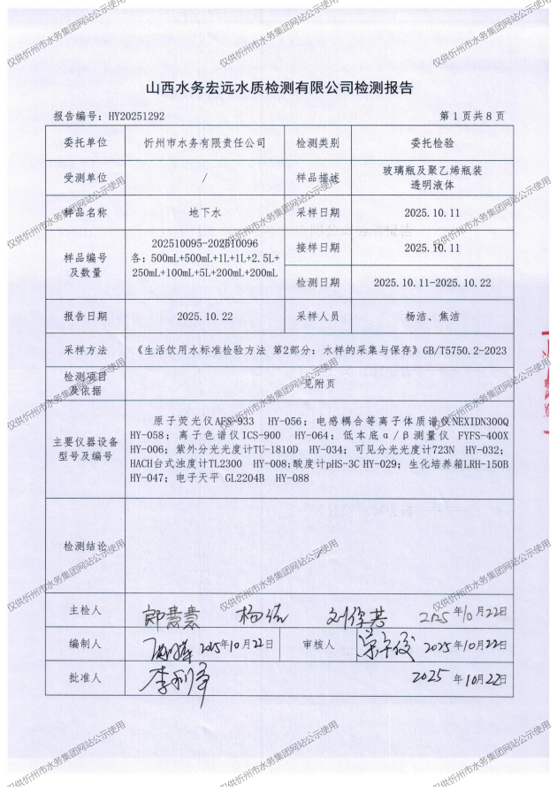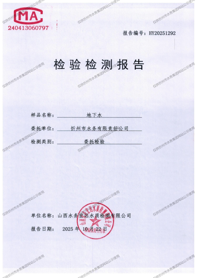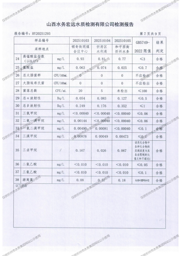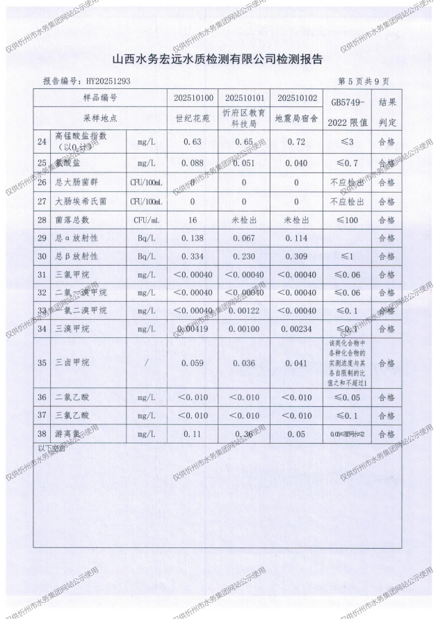 忻州城區(qū)公共供水水源水、出廠水、管網(wǎng)水、管網(wǎng)末梢水2025年10月份水質信息公示