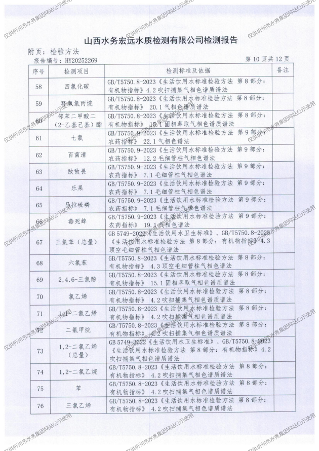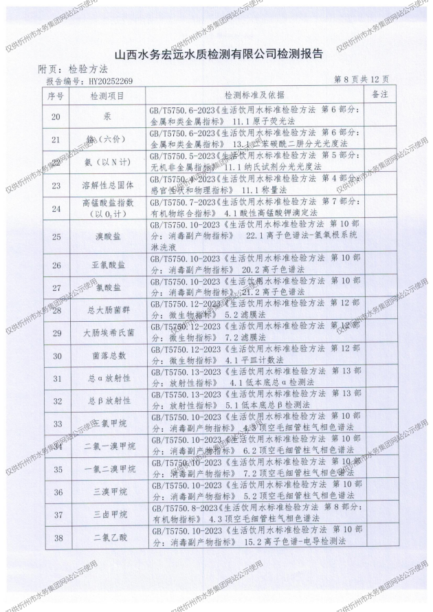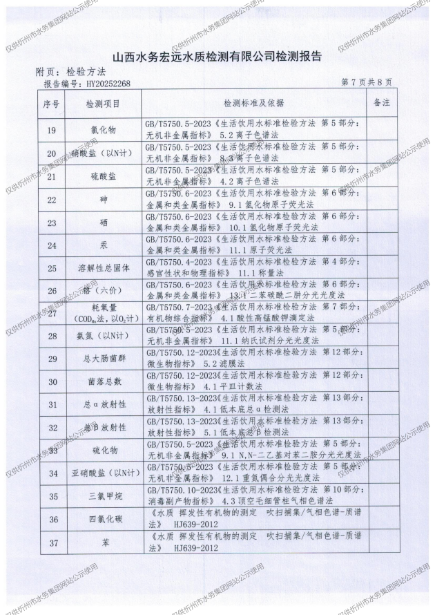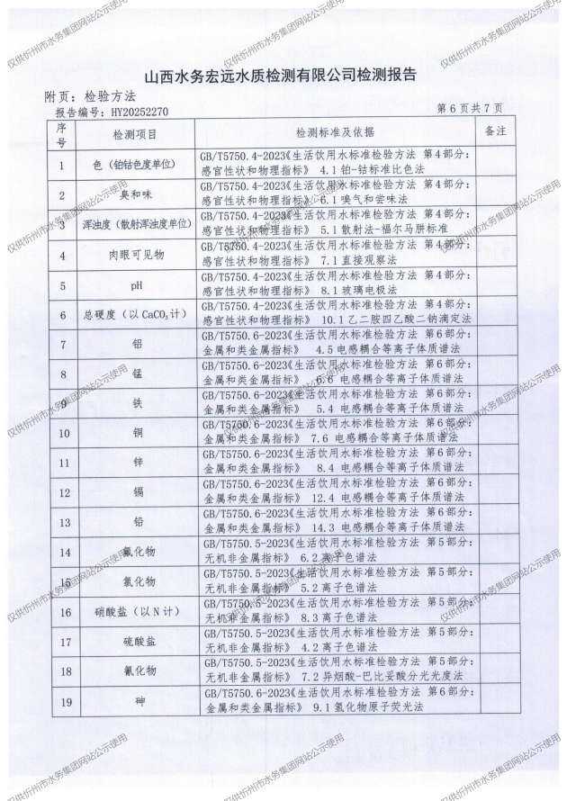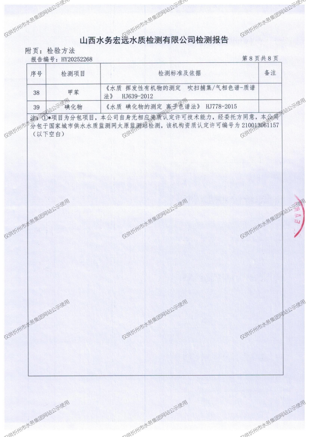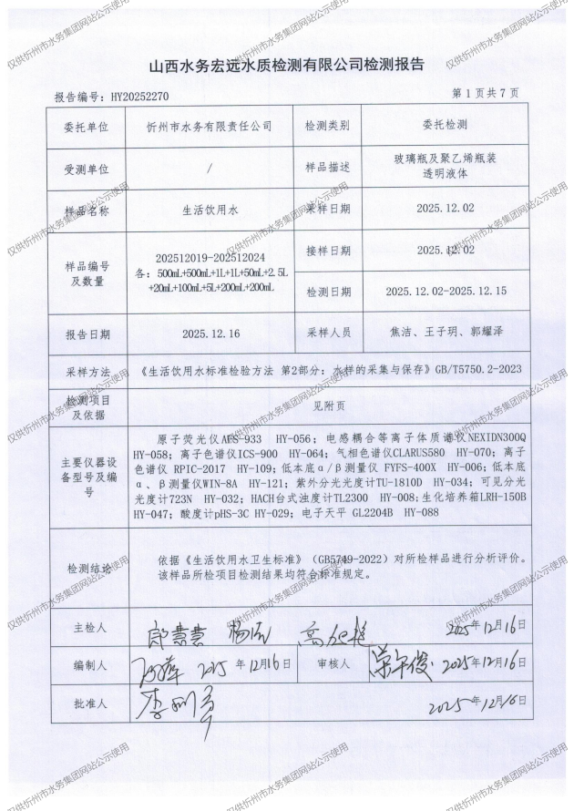 忻州城區(qū)公共供水水源水、出廠水、管網(wǎng)水、管網(wǎng)末梢水2025年12月份水質信息公示